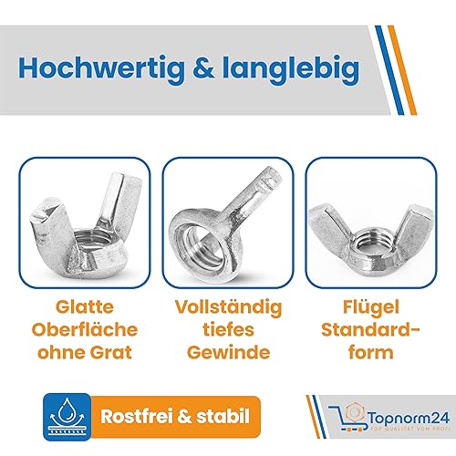 Topnorm24 – DIN 315 Flügelmuttern M5-25 Stück Schmetterlingsmuttern Edelstahl A2 V2A metrische rostfreie hochwertige Flügelmutter Wing Nut (25, M5)