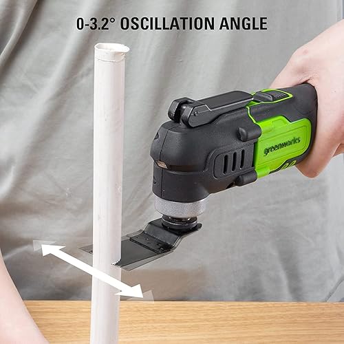 Greenworks 24V Multifunktionswerkzeug G24MT (Li-Ion 24V 18000 Schwingungen pro Minute 3° Oszillationsbogen variable Geschwindigkeit werkzeugloser Klingenwechsel LED-Leuchte ohne Akku und Ladegerät)