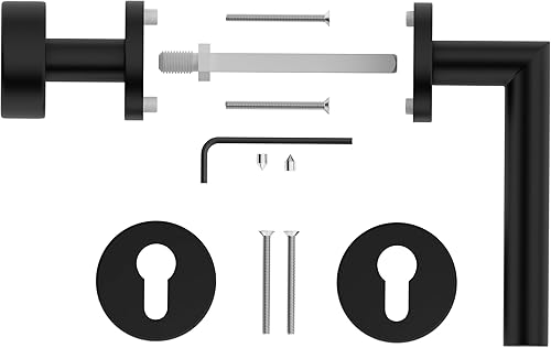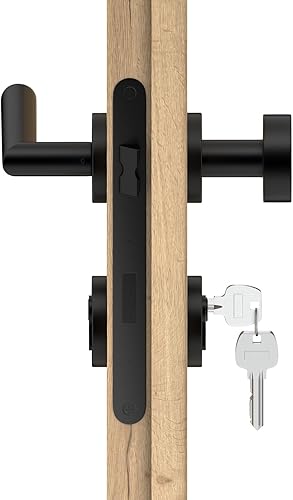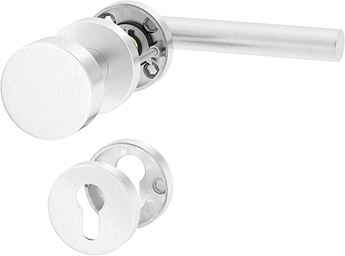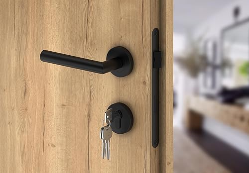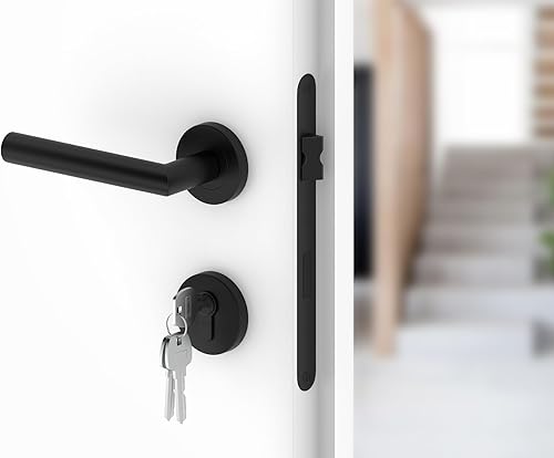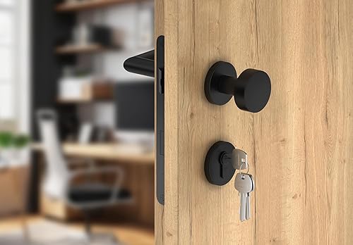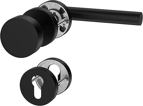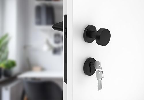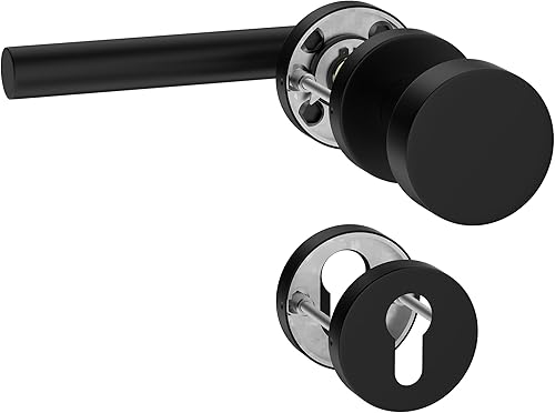 ERGO line NINA Links, Edelstahl Türbeschlag, Schwarz Matt, Drückergarnitur mit Festem Türknopf, PZ-Zylinder, Rosettengarnitur mit Türknopf, Wechselgarnitur Türknauf und Türdrücker, Edelstahl V2A