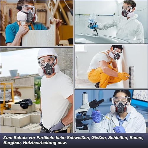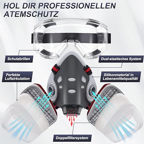 Facemoon Atemschutzmaske, Wiederverwendbar, Halbe Gesichtsabdeckung, Lackierer Gasmaske mit 10 Filters Wiederverwendbar Staubmaske Halbmaske mit Schutzbrille für Polieren Kohlenmine
