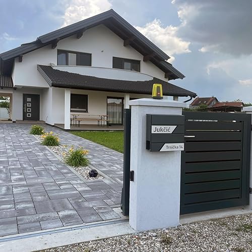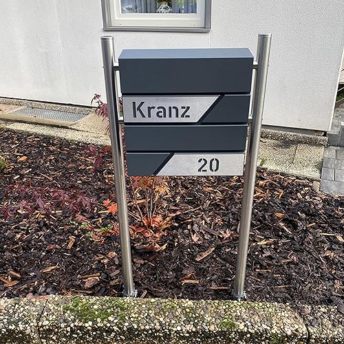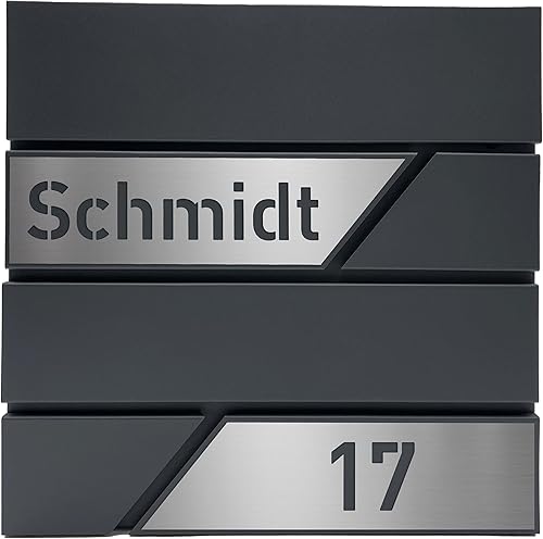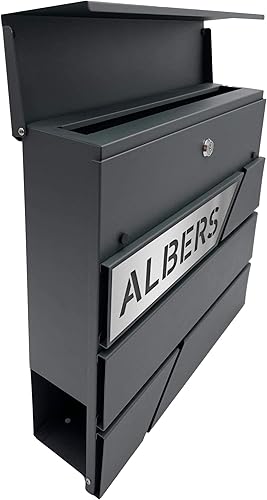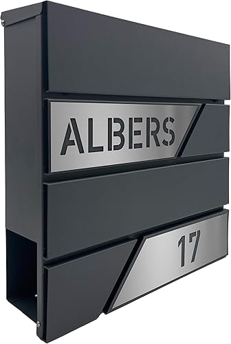 AlbersDesign - Personalisierter Design Briefkasten individuell mit Name/Anthrazit (RAL7016) - mit individuellen Edelstahl-Schildern