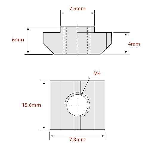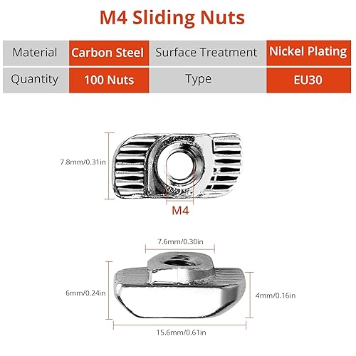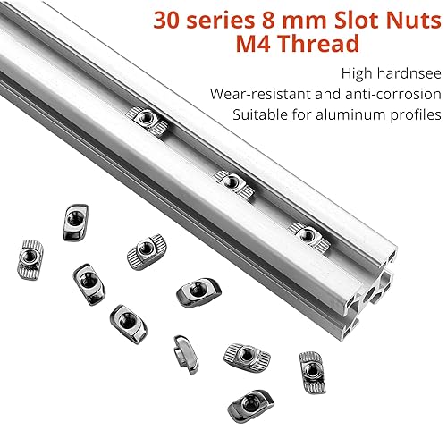 GETLITOOL 100PCS Nutensteine Nut 8 M4, Hammermutter Nutmuttern Kohlenstoffstahl T Nut Muttern M4 Gwinde Hammerkopf Befestigungsmutter für Aluminiumprofil Extrusionsschlitz Standard-30-Serie