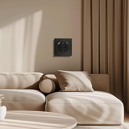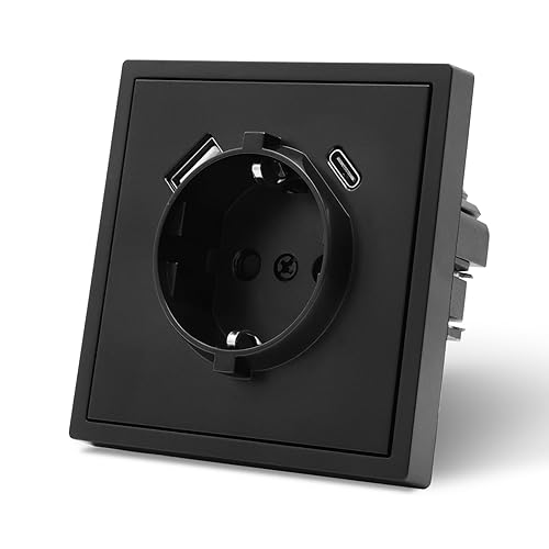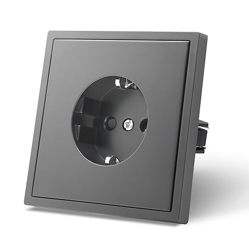 MVAVA Schuko Steckdose EU-Standard, 1 Fach Unterputz Steckdose, 80mm x 80mm Steckdosen, Einfache Installation, 3-Draht Erforderlich, Schwarz
