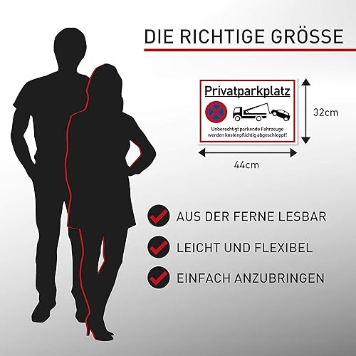XXL Privatparkplatz Schild Parken Verboten (44x32 cm Groß Kunststoff) - Fahrzeuge Werden kostenpflichtig abgeschleppt - Klares Zeichen für Parkverbot - Parkplatz Schilder Privatgrundstück