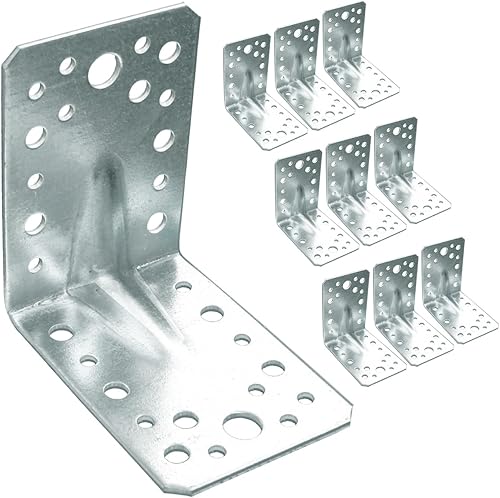 OMIDEAS 10 x Winkelverbinder mit Sicke (70 x 70 x 55 x 1.5) Lochwinkel Bauwinkel Holzverbinder Schwerlast Verbinder Winkel, Silber Verzinkt