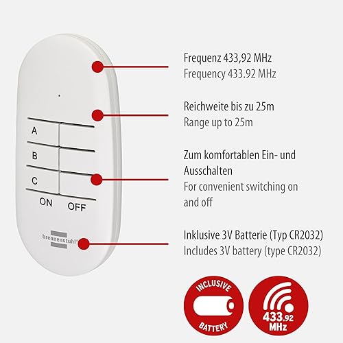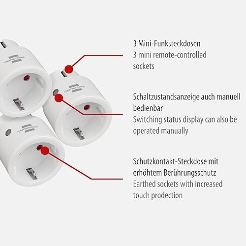 Brennenstuhl Comfort-Line Funksteckdosen-Set Mini 3+1, 3er Funkschalt-Set (Innenbereich, mit Handsender und erhöhtem Berührungsschutz) weiß