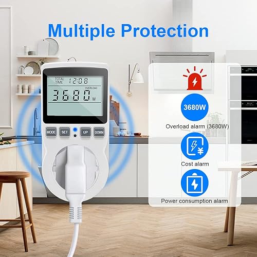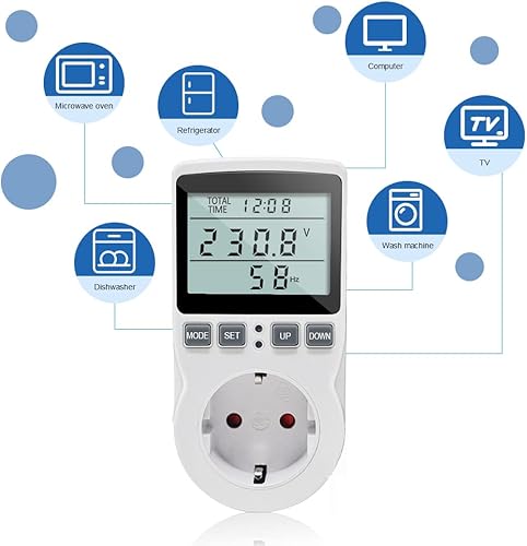 KETOTEK Energiekostenmessgerät, Stromzähler für Steckdose mit 11 Überwachungsmodi 3680W, Strommessgerät mit Überlastsicherung, Stromkostenmessgerät, Leistungsmessgerät Elektrizitäts Analysator LCD