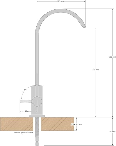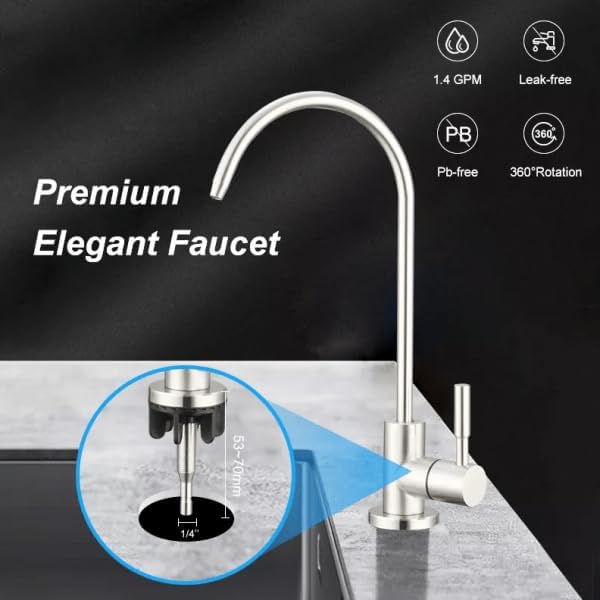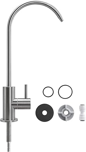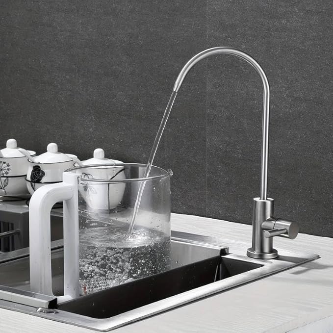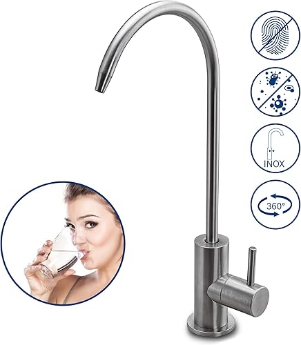EIN-Weg-Wasserhahn Edelstahl Massiv für Umkehrosmose und Wasserfilter, Osmose Wasserhahn, 360° schwenkbar inkl. 1/4' Zoll Schlauch-Anschluss (Sofia)