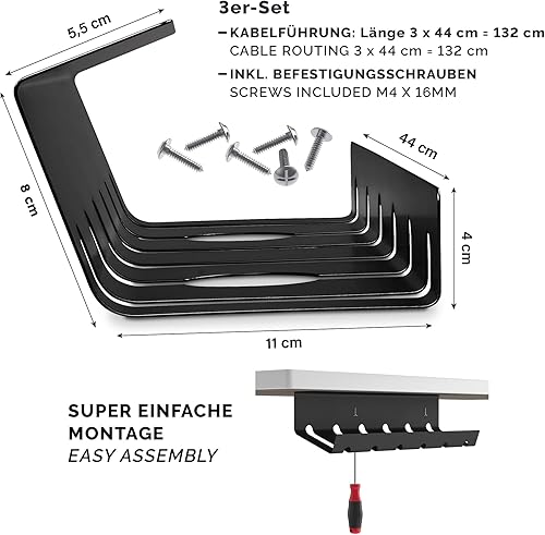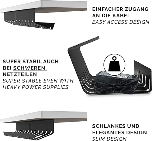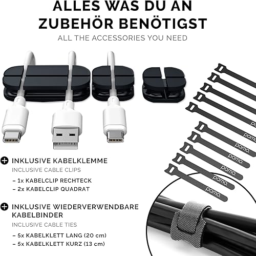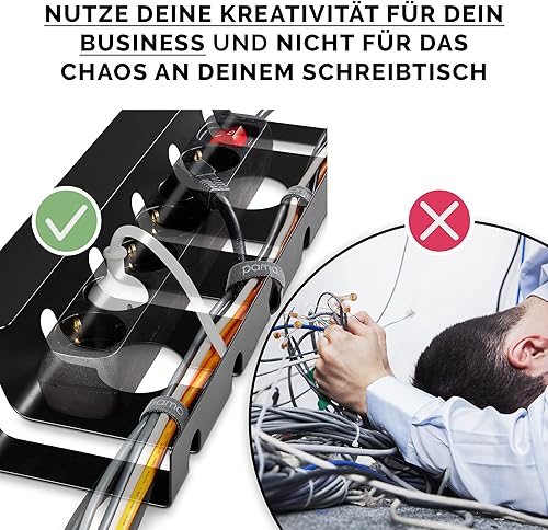 PAMO Kabelkanal Schreibtisch 2er Set zur einfachen Montage untertisch I inkl. 10x Klett Kabelbinder und Kabel-Clips I Schreibtisch Organizer für Büro/Home Office Tisch