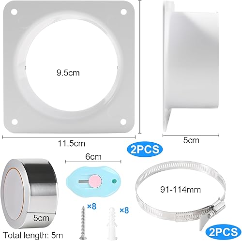 2STK Rohrverbinder Flansch 100 mm / 10 cm Lüftungskanalverbinder Flansch aus ABS Kunststoff mit Edelstahl Schlauchschellen Alu-Folienband gerade Rohrflansch für Heizung Kühlung Lüftungssystem