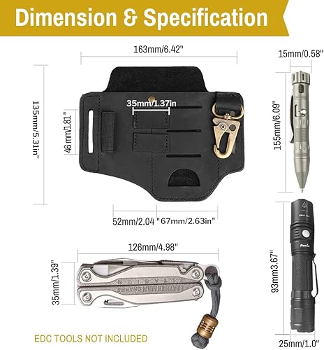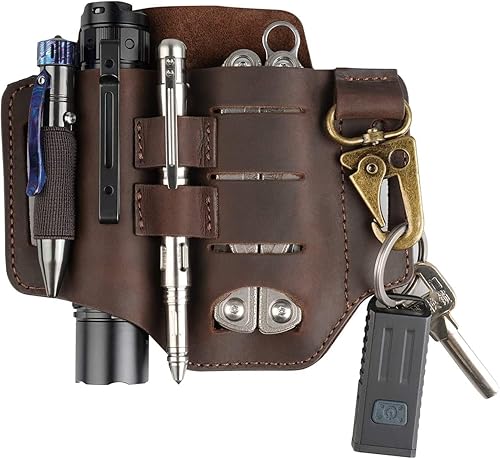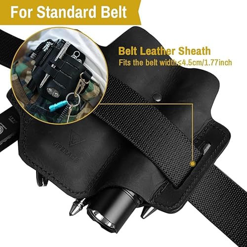 VIPERADE PJ16 Leder EDC lederscheide Tasche Organizer Leder Taktischer Multitool Halter Leder Tasche mit Schlüsselbund Gürtelschlaufe Stifthalter für Taschenlampe Werkzeuge Outdoor Camping -Schwarz