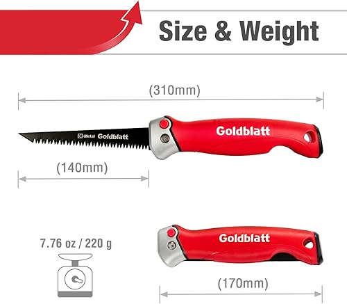 Goldblatt Klappsäge 310mm Handsäge, Trockenbausäge Hand-Stichsäge aus BIM-Stahl mit 8 TPI & 3 Schneidkanten, mit Sicherheitsschloss, geeignet für Trockenwand, Sperrholz, Zementplatte, usw.