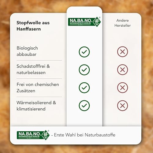 Nabano Stopf-Hanf - Stopfwolle aus Hanffasern zur Wärmedämmung & Isolierung - natürliche Hanf-Dämmung - Hanfwolle - Dämmstoff - Stopfdämmung - 1-25 Kg, Gewicht:10 Kg