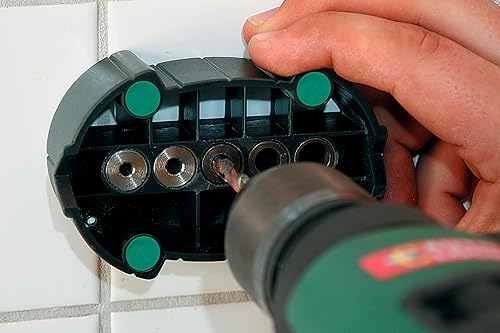 wolfcraft accumobil Mobile Bohrhilfe 4685000 / Handliches Bohrzubehör für rechtwinkliges und präzises Bohren mit praktischen Bohrbuchsen und Positionierungslinien