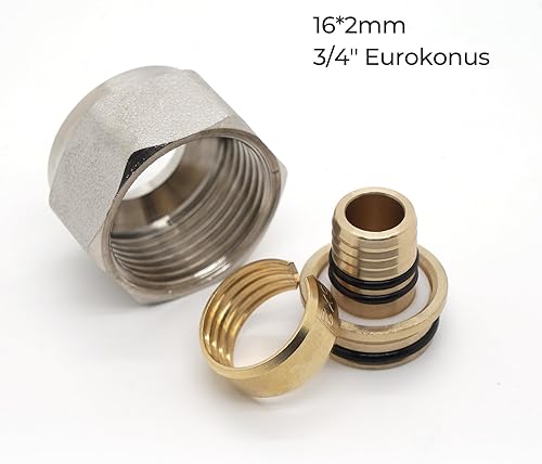 Vancoco 10 Stk. Klemmringverschraubung 16x2mm für Heizrohr Fußbodenheizung Hahnblöcke 3/4 '' Eurokonus