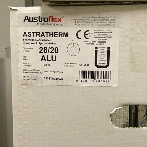 Austroflex Rohrisolierung 28 x 20mm voller Karton 30m Inhalt (1,79€/Meter) Rohrschalen alukaschiert Steinwolle Mineralfaserschale Isolierung