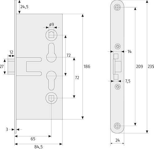 ABUS Einsteckschloss EFS65 für Feuerschutztüren, 21511