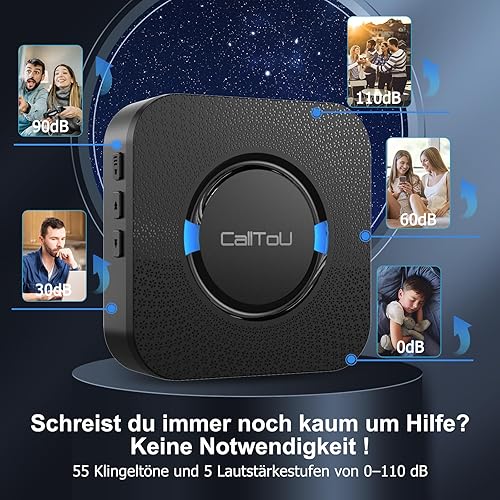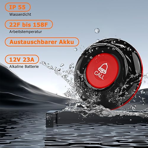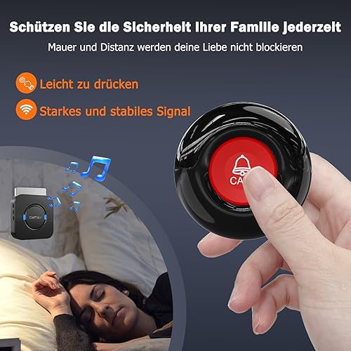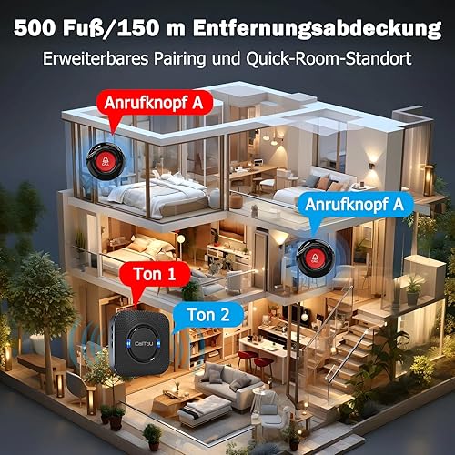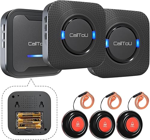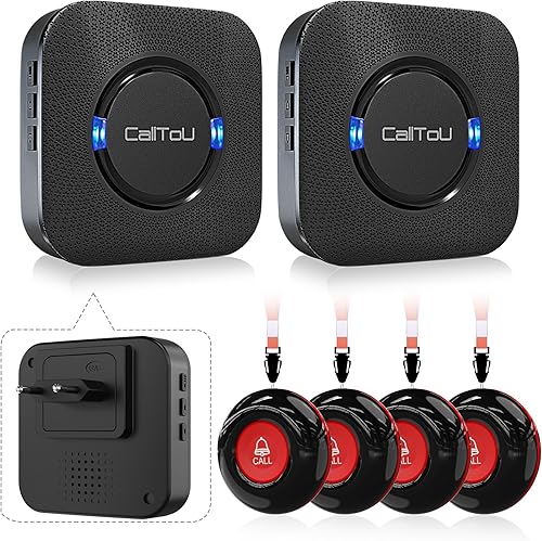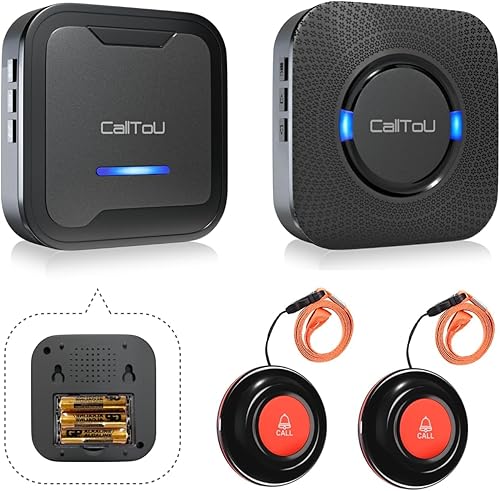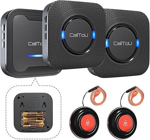 CalltoU Notrufknopf für Senioren/senioren Notruf/hausnotruf SOS notfallknopf 150M/500Ft Reichweite (4 Sender 2 Empfänger)