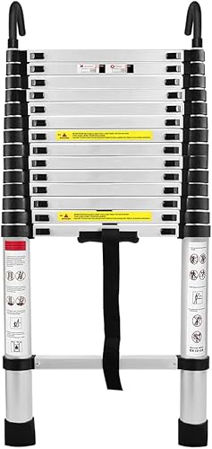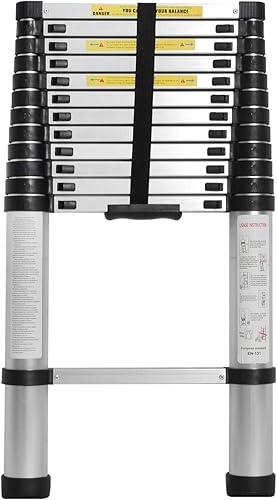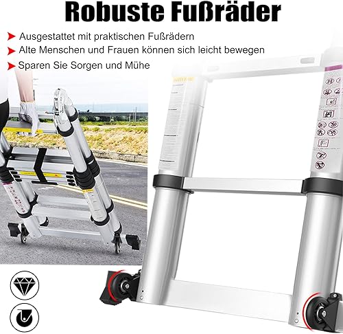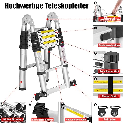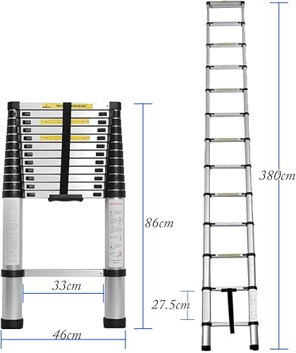 Teleskopleiter Haushaltleiter 3,8M tragbar faltbar Leiter aus Aluminium Dachbodenleiter Mehrzweckleiter KS-JF-001