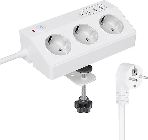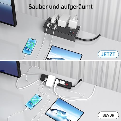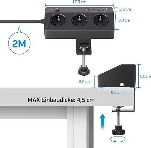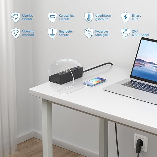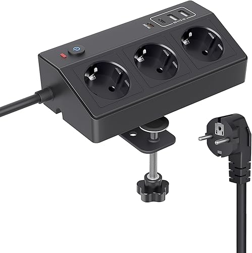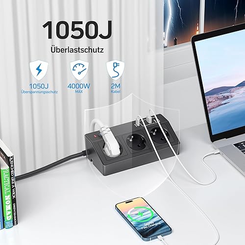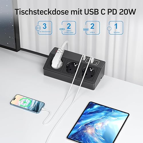 Tischsteckdose mit USB C PD 20W, 4000W/16A Steckdosenleiste Schreibtisch, STGAROT 3 Fach Mehrfachsteckdose 4 USB mit Schalter 2M Kabel, Überspannungsschutz Steckdose Tisch für Zuhause Büro, Schwarz