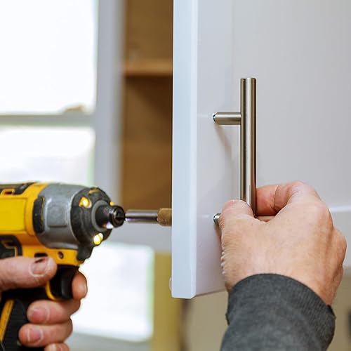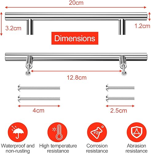 Mesybveo 8 Stück Edelstahl Küchengriffe Silber, Griffe für Küchenschränke, Türgriffe Silber 128mm Lochabstand, Schubladengriffe mit 32 Schrauben, Runde Ausführung, Möbelgriffe für Küche, Schubladen