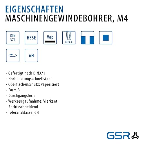 GSR PROFI Maschinen-Gewindebohrer M4, Gewindeschneider für Edelstähle DIN 371, HSSE-VAP Metallbohrer, Durchgangsloch Kernlochbohrer, Form B, verstärkter Schaft für metrische Gewinde