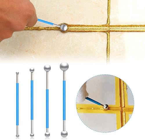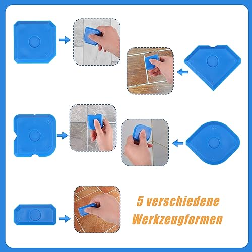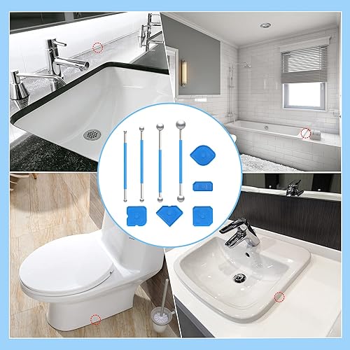 Werkzeug Schaber Kit Fugenglätter Set 9-teilig, silikonfugen abzieher, 4 Stück Silikonfugenglätter, 5 Stück Stahlkugel, Doppelend-Silikonfugenzieher, Abdichtungswerkzeugsatz für Fliesen