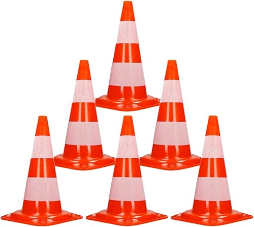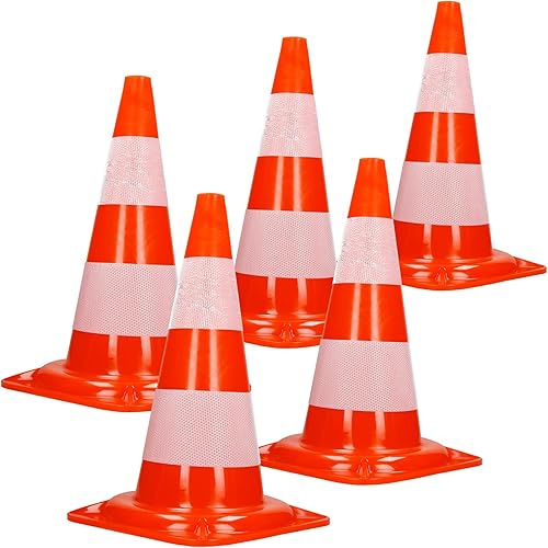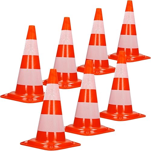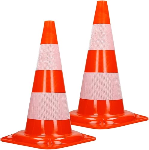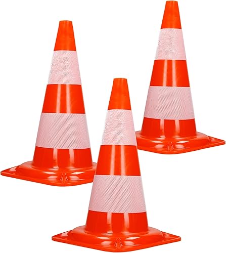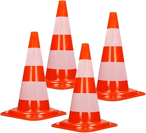 ECD Germany 4 Stück Verkehrskegel Pylone 47 cm, Orange-Weiß, Verkehrsleitkegel mit 2 reflektierenden Streifen, stapelbar & flexibel, Warnleitkegel Warnkegel Leitkegel Verkehrshütchen Markierungskegel