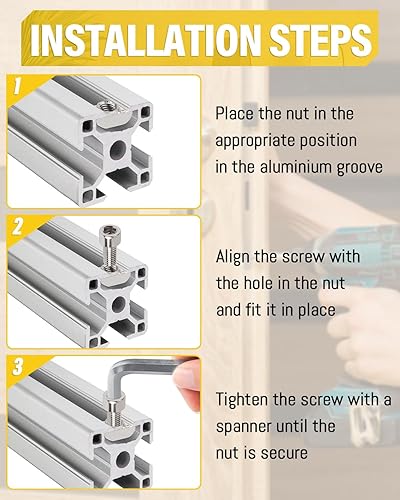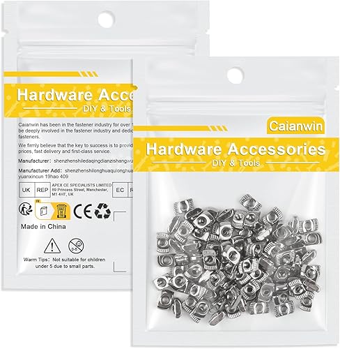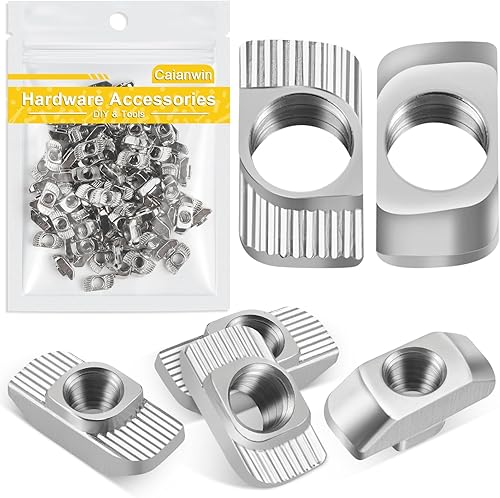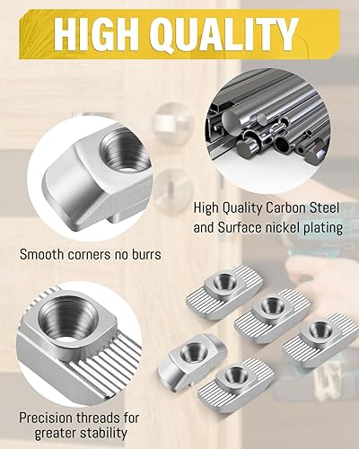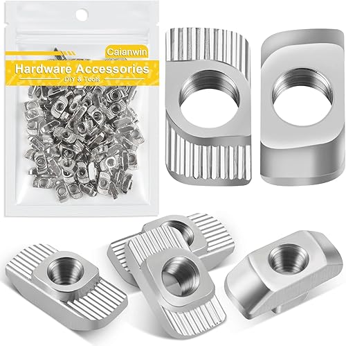 Caianwin Nutensteine Hammerkopfmutter 100 Stück T-Nut M6 Kohlenstoffstahl Vernickelt T-Slot Nutmuttern Hammermutter für Aluminiumprofil-Extrusionsschlitz 30-Serie hammerkopfschrauben
