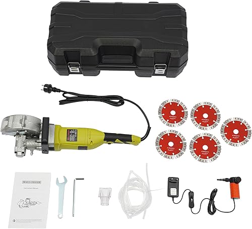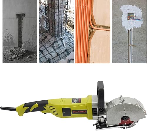 Mauernutfräse Schlitzfräse Betonschlitzmaschine 4000W 6500r/min Wand Nut Schneidemaschine mit 5 x Sägeblätter, Mauerfräse Schlitzfräse mit 37mm Tiefe, Grün, 48 x 16 x 4cm