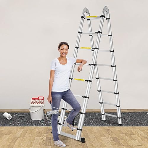 NAIZY Aluminium Teleskopleiter Klappbar 3,2M Multifunktionsleiter Anlegeleiter Mehrzweckleiter Ausziehbare Leiter 11 Stufe Stehleiter aus Hochwertigem Aluminium Belastbarkeit 150KG