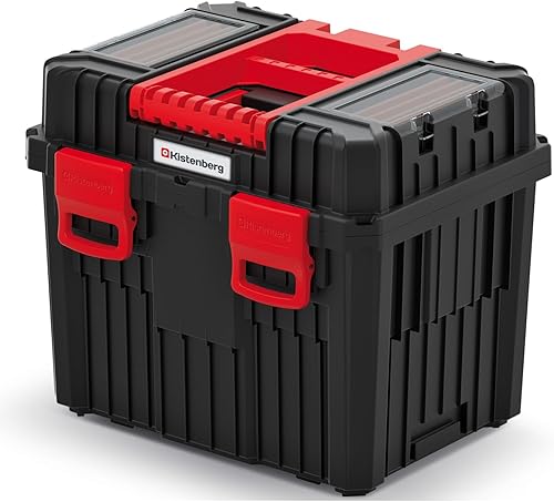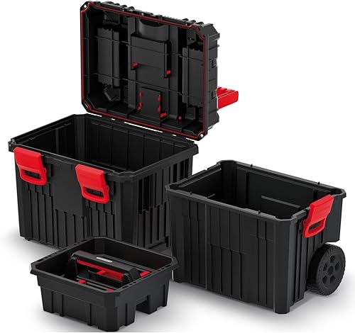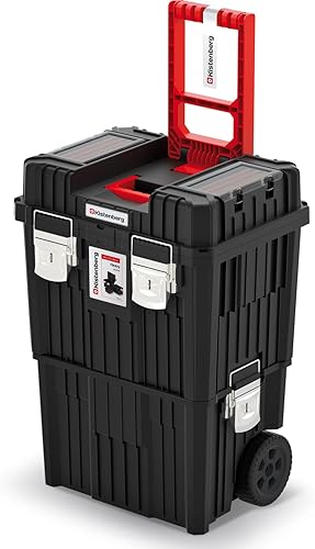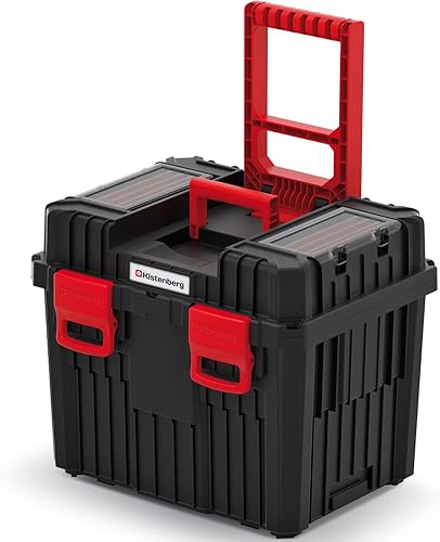 Kistenberg 2 in 1 Werkzeugtrolley Werkzeugkiste Werkzeugkasten Werkstattkoffer Rollende Werkstatt (Klemmverschlüssen, Organizer im Deckel, Staubdicht, 450 x 360 x 640 mm (Mit Metall-Verschluss)
