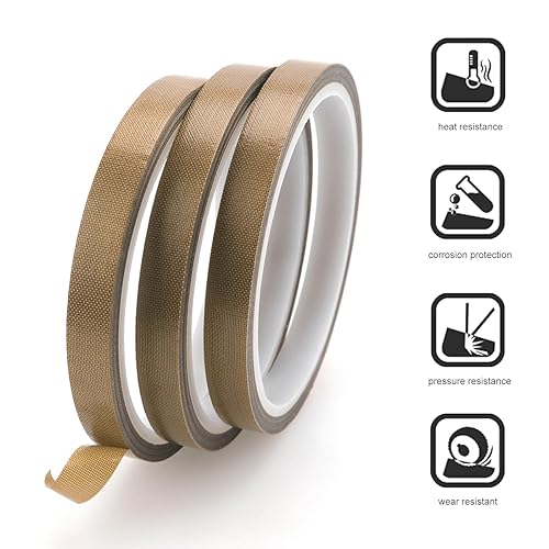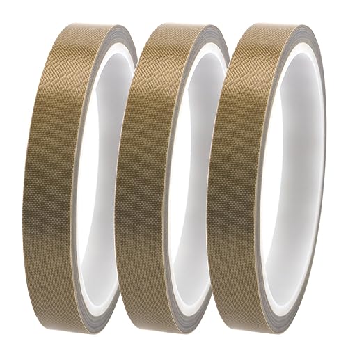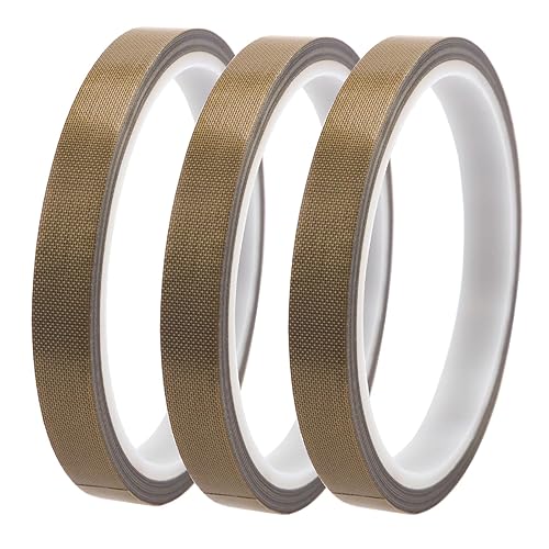 YIXISI 3 Stücke PTFE Fabric Tape, Hochtemperaturband, PTFE Glasgewebeband, PTFE Glasklebeband, High Temp Klebeband, PTFE Klebeband, für Vakuumiergerät, Handversiegelung (13mm x 10m)