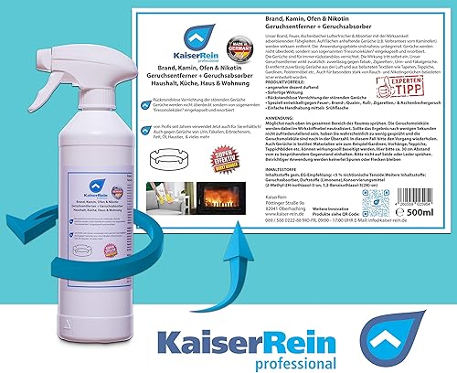 KaiserRein Geruchsentferner + Geruchsabsorber 500 ml Brand-, Kamin-, Ofen- Nikotin- Gerüche
