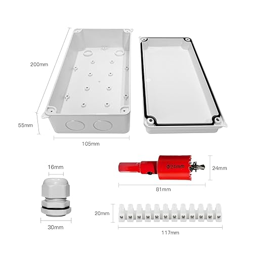 Segvi Wasserdicht ABS-Anschlussdose IP65 für Feuchträume, Oberflächenmontage, Maße 150 x 110 x 70 mm für Durchmesser 6-12 mm, mit 10 Kabelverschraubungen und 20 mm Lochsäge.
