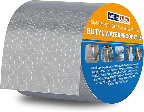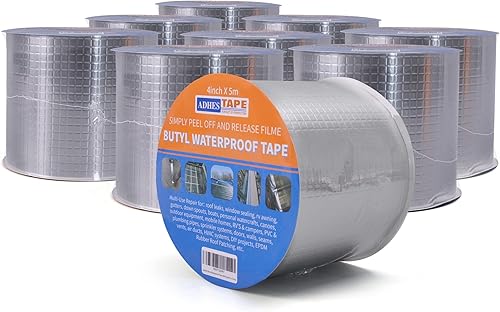 ADHES Butylband Dichtungsbänder Silber Aluminiumfolie Tape Wasserfestes Klebeband Reperaturband für Dach, Wohnwagen, Flachdach, 100mm x 5m