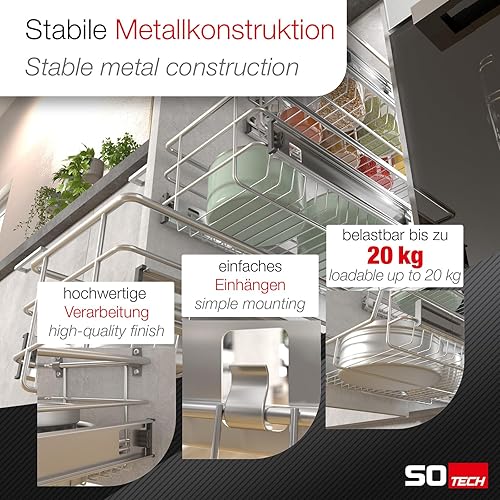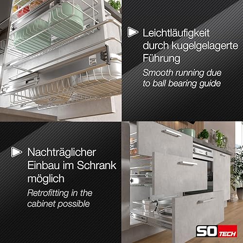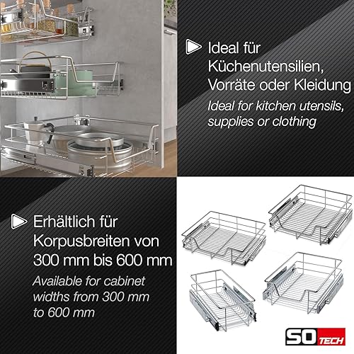 SOTECH 60 cm Teleskopschublade Vollauszug Küchenschublade Teleskopauszug Schubladenauszug Regal Schrankauszug