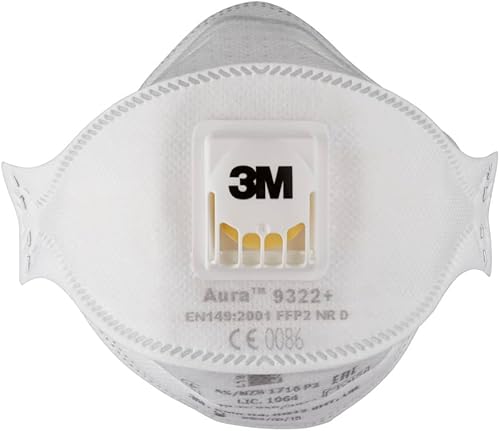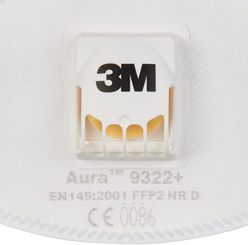 3M™ Aura™ Staubmaske FFP2 mit Ventil, Serie 9322+, 10 Masken pro Packung, Weiß