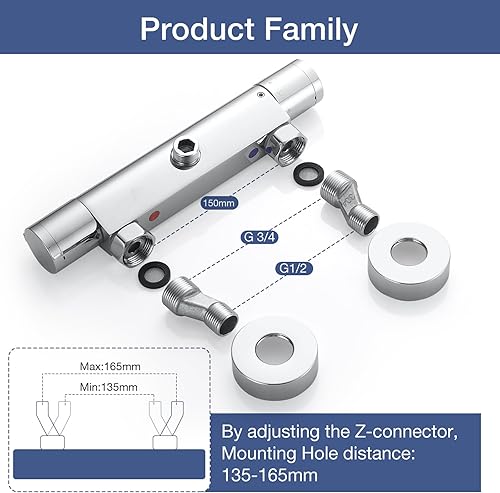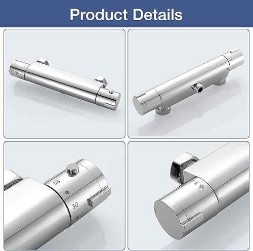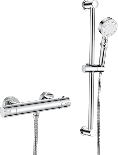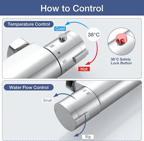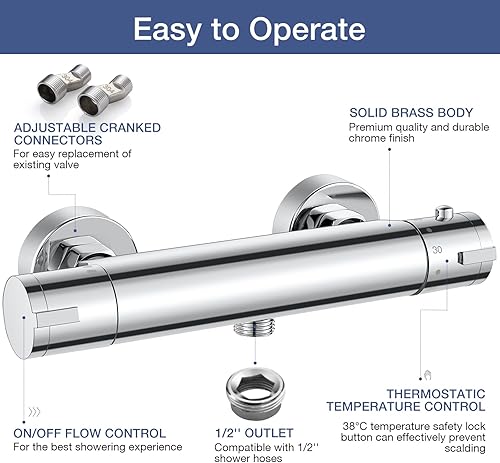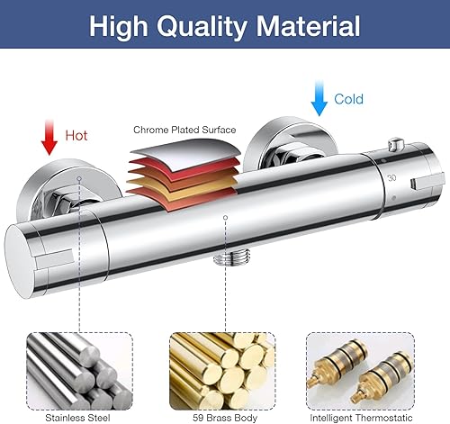 Duscharmatur mit Thermostat, Bevankly Aufputz Thermostat Duscharmatur Mischbatterie Dusche, Duschthermostat Duscharmaturen Messing Armatur Dusche mit 38 °C Sicherheitsstopp, Chrom, 150mm