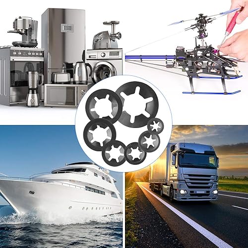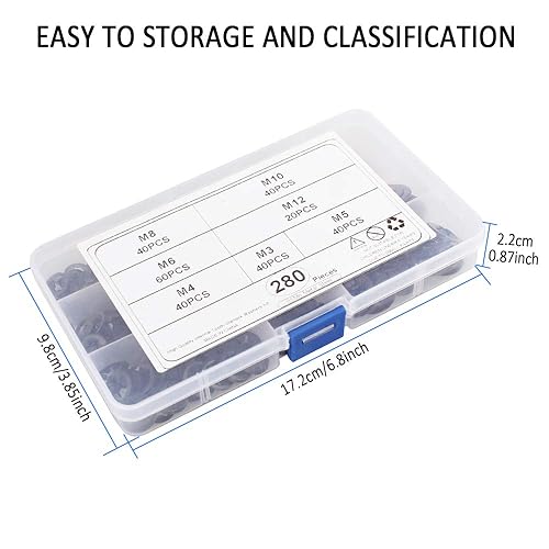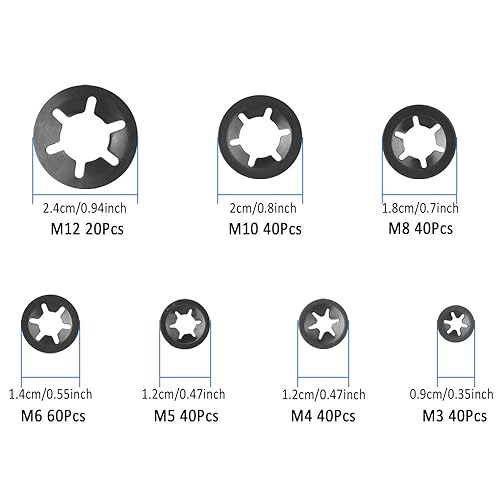 Dadabig 280 Stück Starlock Unterlegscheiben, Innenzahn Schnellverschluss Starlock-Unterlegscheiben M3/M4/M5/M6/M8/M10/M12 Zahn Geschwindigkeit Sicherungsscheiben Speed Clips Sortiment Kit (Schwarz)