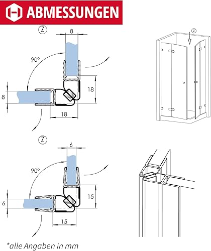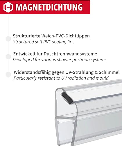 Gedotec Magnet-Duschlippendichtung für Duschtüren wasserabweisend | 1 Paar Profil-Dichtung 180° | Länge: 2 m | Duschdichtung 6mm - 8mm| Türdichtung PVC Transparent | Duschkabinen Dichtungen Duschwand