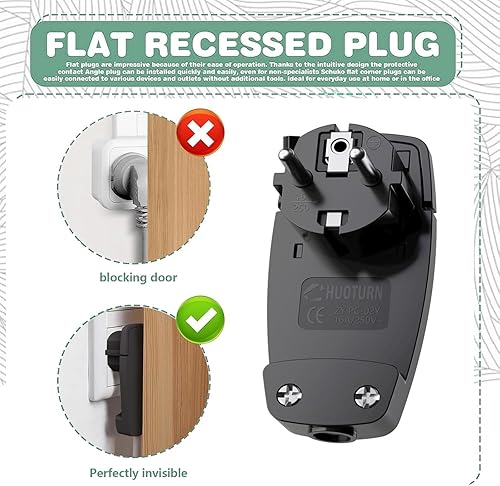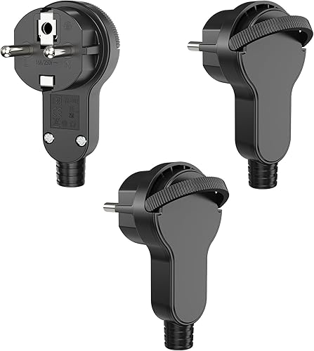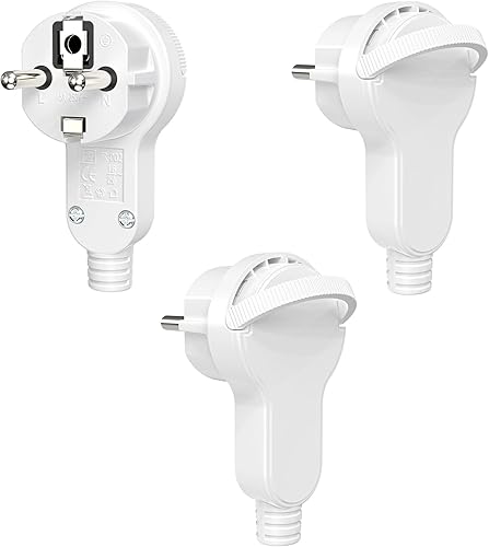 3 Stück Schuko Stecker Flach, Extraflach Schutzkontakt Winkelstecker mit Klappgriff, 250V 16A für Kabel bis 3x1,5 mm² Schuko Stecker Flachstecker Weiß