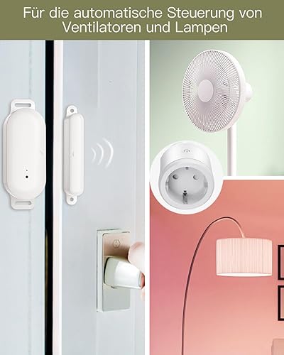 UTOI Funk Abluftsteuerung Set mit Fenster-Magnetkontakt und Funksteckdose für Dunstabzugshaube Kamin Fensterschalter Wireless Fensterkontaktschalter