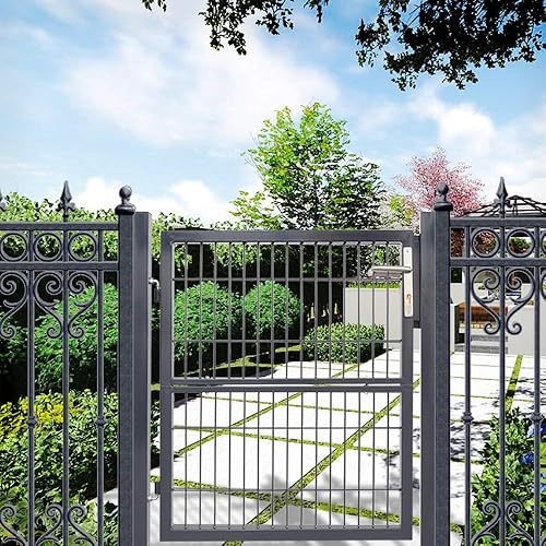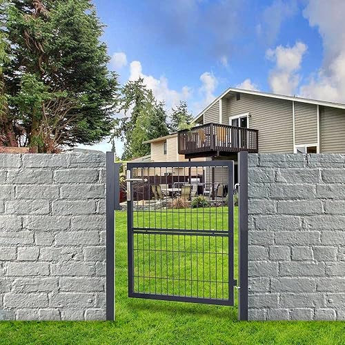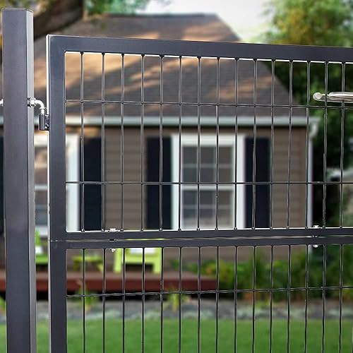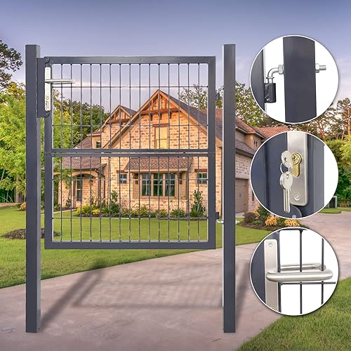 Jiubiaz Gartentor aus verzinktem Stahl, 120x100cm Anthrazit inkl.hochwertigem Griff, Schloss und Schlüsseln, Gartentür, Hoftor, Zauntor für Stabmattenzaun