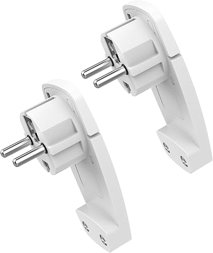 2 Stück Weiß Schutzkontakt Winkelstecker 250 V (16A), Europäischer Stecker mit Klappgriff, Schutzkontakt Stecker für Kabel bis 3x1,5 mm², Flachstecker IP20 für den Heimgebrauch