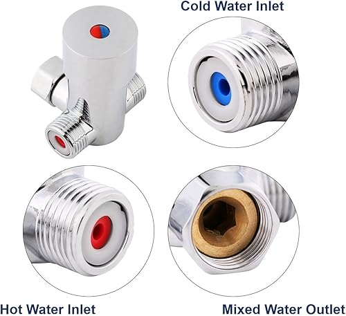 G1/2 Heiß- und Kaltwasser-Mischventil, automatisches Thermostat-Mischventil mit Rückschlagventilen, 20 m³/h Temperaturregelungsmischer für Haushalts- oder gewerbliche Rohre