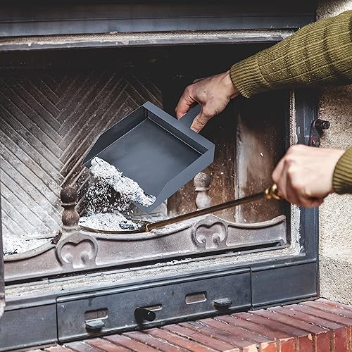 Relaxdays Ascheeimer mit Schaufel, Stahl, Aschekübel für Kamin & Ofen, HxBxT: 35,5 x 23 x 9 cm, Ascheschaufel, anthrazit