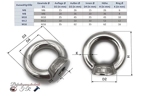 5 Stk. M10 Ringmutter V4A [ V4A / V2A Wählbar M6 M8 M10 M12 | INOX V4A A4 AISI 316 V2A A2 AISI 304 Rostfrei ähnl. DIN 582 (M10, V4A)