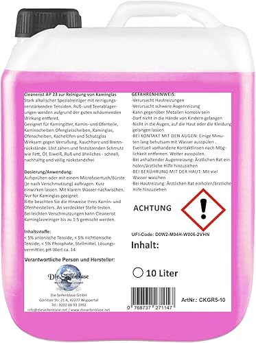 Kamin- & Ofenglas Reiniger | 5 Liter | Reinigungsmittel zum Entfernen von hartnäckigen Verschmutzungen auf Kamin- und Ofenglasscheiben I inkl. 1x Schwamm & Ausgießer