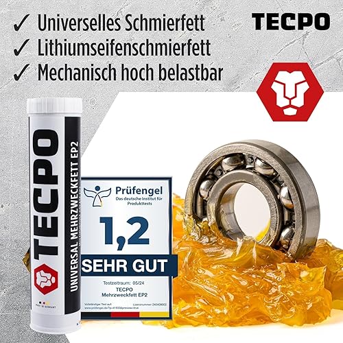 TECPO 6x Universal Mehrzweckfett 400g– Kartusche Schmierfett, Lithiumfett, Universalfett, KFZ-Schmierung, wasserbeständig